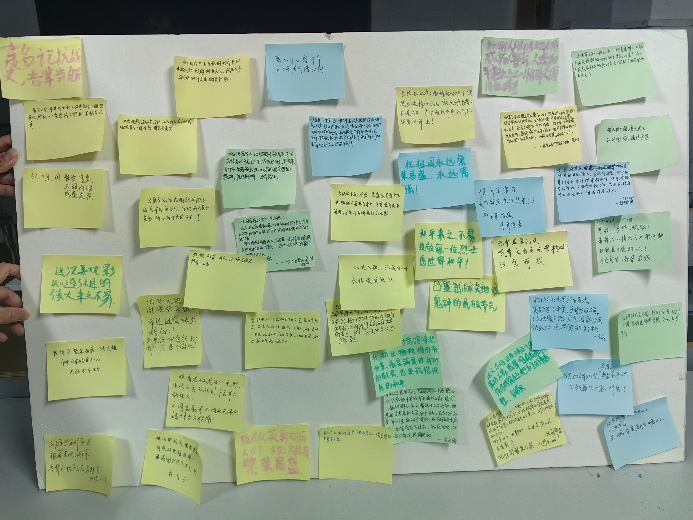 观影结束后,“我对祖国有话说”环节中同学们在便利贴上写下真挚感言:“愿以吾辈之青春,捍卫盛世之中华”“山河虽无恙,吾辈当自强”……一句句滚烫的话语,是青年一代对祖国最深情的告白。