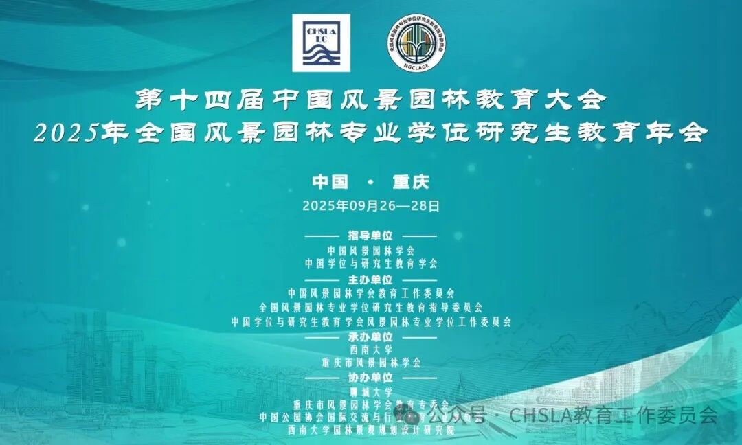 近日,第十四届中国风景园林教育大会暨 2025 年全国风景园林专业学位研究生教育年会在西南大学举办。大会以汇聚全国风景园林教育智慧、探索行业教育创新发展为核心目标,同期开展优秀毕业设计(论文)评选与相关获奖作品展览。