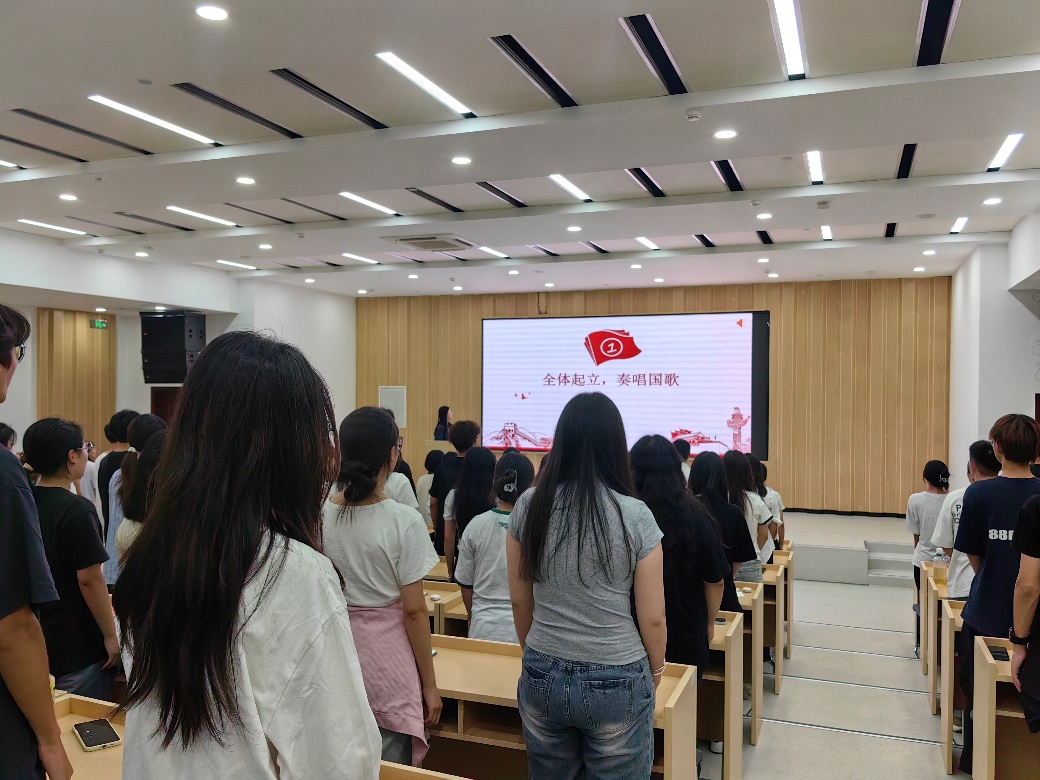 本次开学典礼在郑馨雨老师的主持下有序进行。典礼伊始,全体师生起立,高唱国歌。伴随着雄壮的《义勇军进行曲》开班典礼正式拉开序幕。