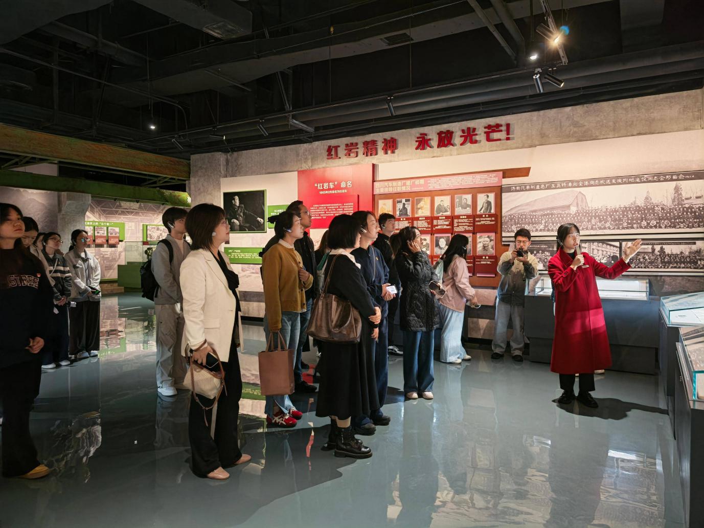 讲解员引领下参观博物馆