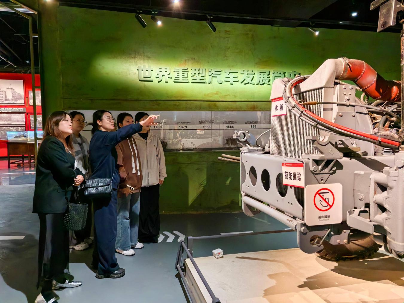 活动以“第一议题”学习开篇,教师党支部支委林竹隐同志领学《习近平谈治国理政》第五卷中“以中国式现代化推进强国建设”相关内容,结合博物馆承载的三线建设奋斗史,引导党员带着思考开启研学之旅。在博物馆讲解员引导下,党员们先后参观“汽车工业奋斗史展区”“红岩精神与工业精神展区”“重器人物故事展区”。从工业遗存中感悟艰苦创业、精益求精的精神,从建设者事迹中学习听党指挥、忠诚担当的使命情怀,实物、影像与史料交织,让红色精神可感可触,为后续专业融合研讨奠定思想基础。