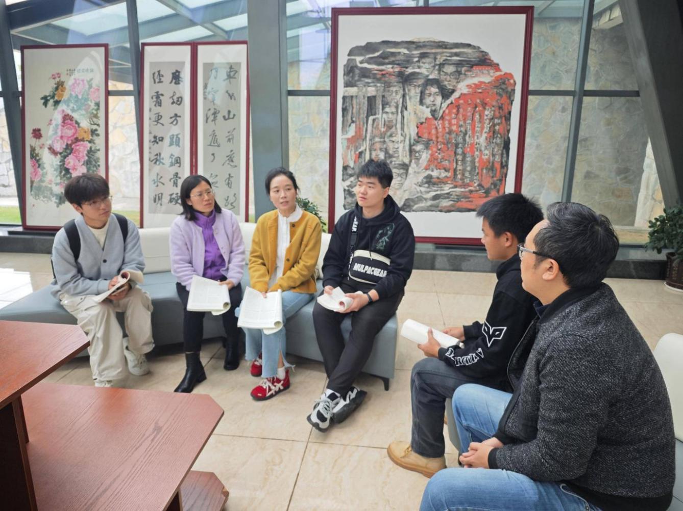 研讨交流环节,师生党员以党小组为单位,围绕“红岩精神与专业教学结合点”深入探讨。大家结合参观所得,从展陈设计、工业遗产活化、建筑遗存保护等角度,挖掘课程思政元素,破解红色教育与专业教学“两张皮”难题,为推动“党建+专业”实践路径建言献策。