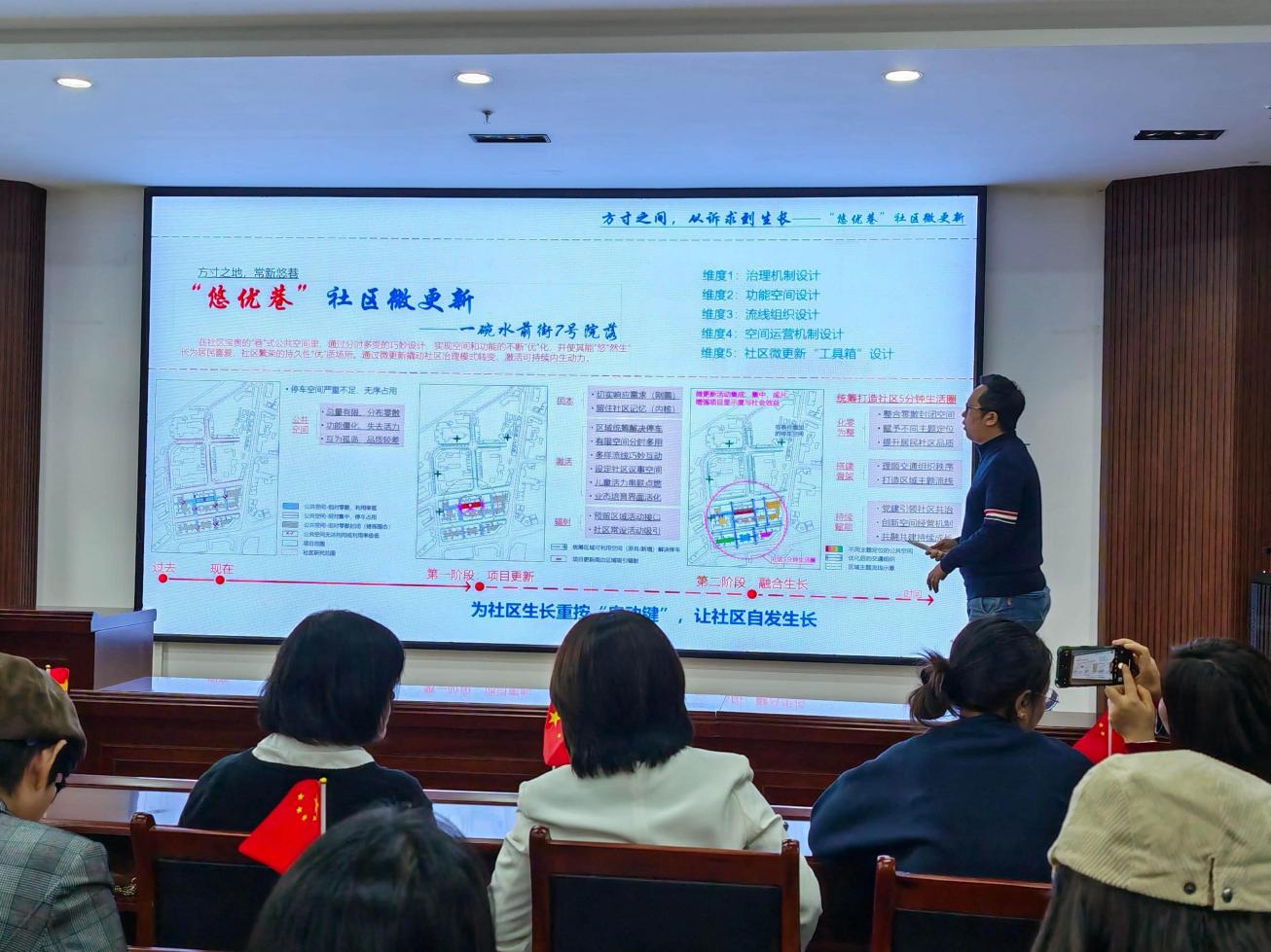精神的传承需要实践载体,专业的价值需要服务社会。最后在议设计赋能案例研讨环节,建筑系教师苏鹏海以“‘悠优巷’社区微更新——一碗水前街7号院落”项目为样本,通过“方寸之地,更新迭变”的设计逻辑,从肌理机制、功能空间、场景组织等多维度,生动阐释了如何以红岩精神为引领,在社区微更新中实现历史文脉传承与民生需求满足的融合。其为社区生长重拾保鲜膜,让社区自发生长的设计理念,为师生们将红色精神转化为服务民生、助力乡村振兴的设计实践,提供了极具参考价值的思路借鉴。