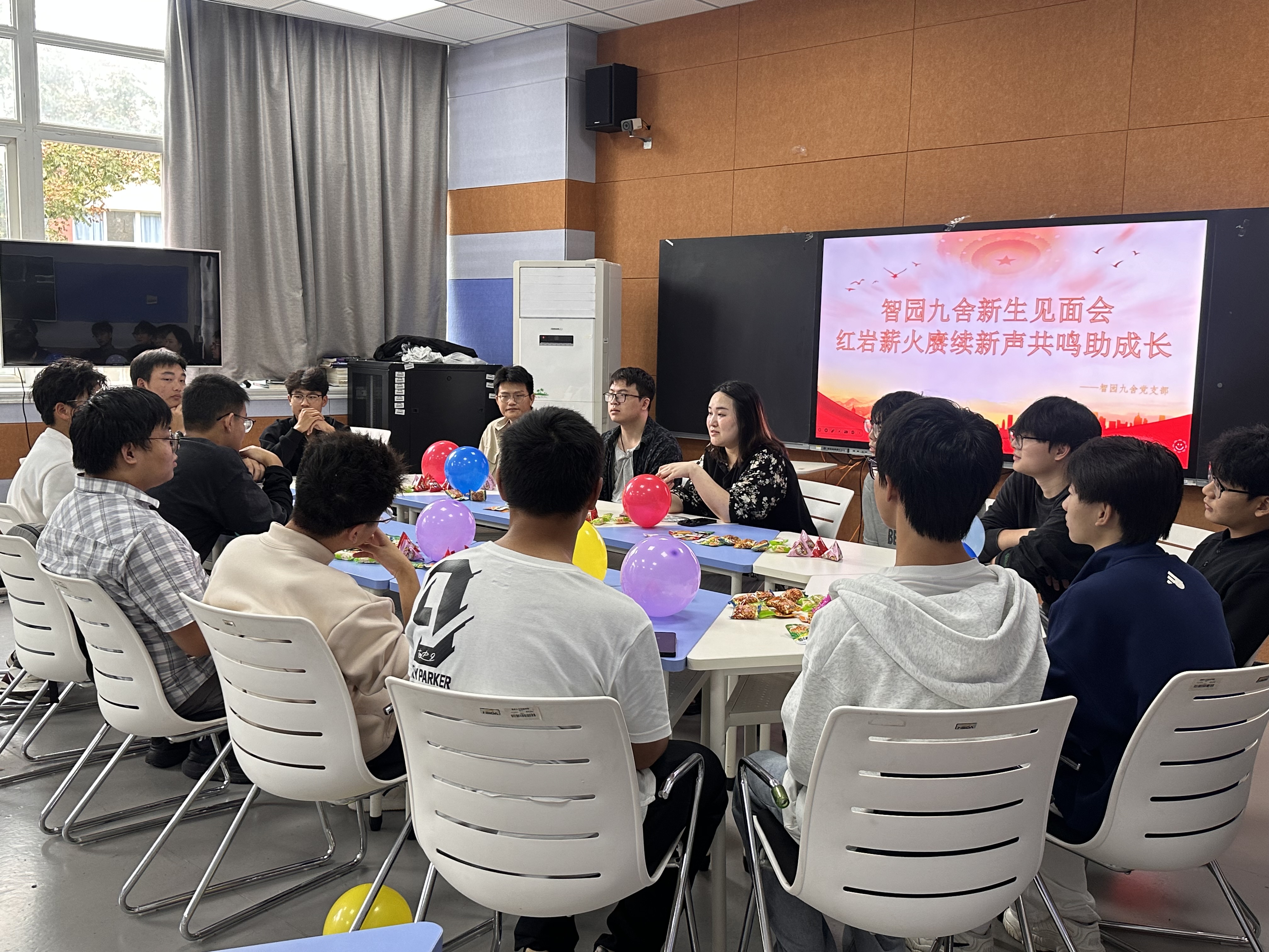 红岩薪火赓续,新声共鸣助成长。为助力新生快速适应大学生活,全方位围绕学生、关心学生、服务学生,了解新生思想动态和生活学习需求,10月28日中午,智园九舍党员服务站在慧思楼8307活动室成功开展2025级新生“面对面”座谈交流会。智园九舍马克思主义学院、外国语学院、管理学院新生与专升本代表参加活动。