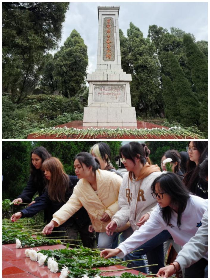 参观完毕,随后调研团队怀着崇敬的心情,有序前往“一碗水”烈士陵园。“青山有幸埋忠骨,松柏垂头慰英灵。”全体师生在苍松翠柏掩映的纪念碑前整齐列队,深切缅怀革命先烈,向为国家建设事业牺牲的工程兵战士默哀致敬。全体师生保持肃立,向纪念碑深深三鞠躬。鞠躬仪式后,师生们依次上前,向先烈敬献白菊,以寄哀思。