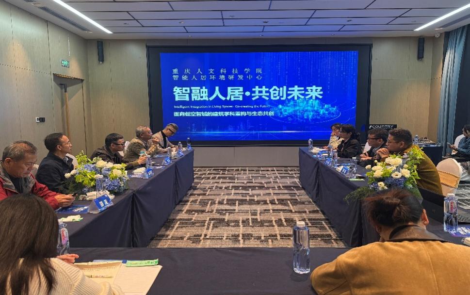2025年11月9日,重庆人文科技学院智能人居环境研发中心 “智融人居·共创未来”——面向低空智城的建筑学科重构与生态共创2026年学科转型交流会顺利举行。参加本次交流的有重庆大学教授李云燕、光大百龄帮郑冉副总经理、重庆市设计院高级工程师战丽梅,以及校长助理双海军、科研处处长肖亚成、建筑与设计学院院长张雄、哈尔滨工业大学教授邵龙及科研平台全体成员,会议重点就“低空智城背景下建筑学科的科研、教学与产业融合路径”进行了探讨。