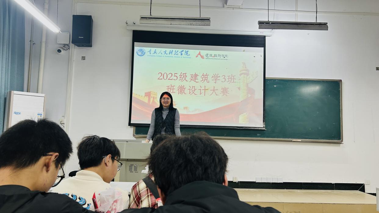 2025年11月13日晚,重庆人文科技学院建筑与设计学院2025级建筑学3班在8教106教室组织开展了“防火于未燃·青春守平安”主题团课及班徽设计大赛。本次活动由建筑教研室主任、班主任莫文静与班长陈阳共同策划主持,围绕学校“心怀师陶之志,践行学陶之路”主题教育要求,融合专业特色与校园文化建设,引导学生将陶行知先生“生活即教育”“教学做合一”的教育理念转化为具体行动,提升安全意识,增强班级凝聚力。