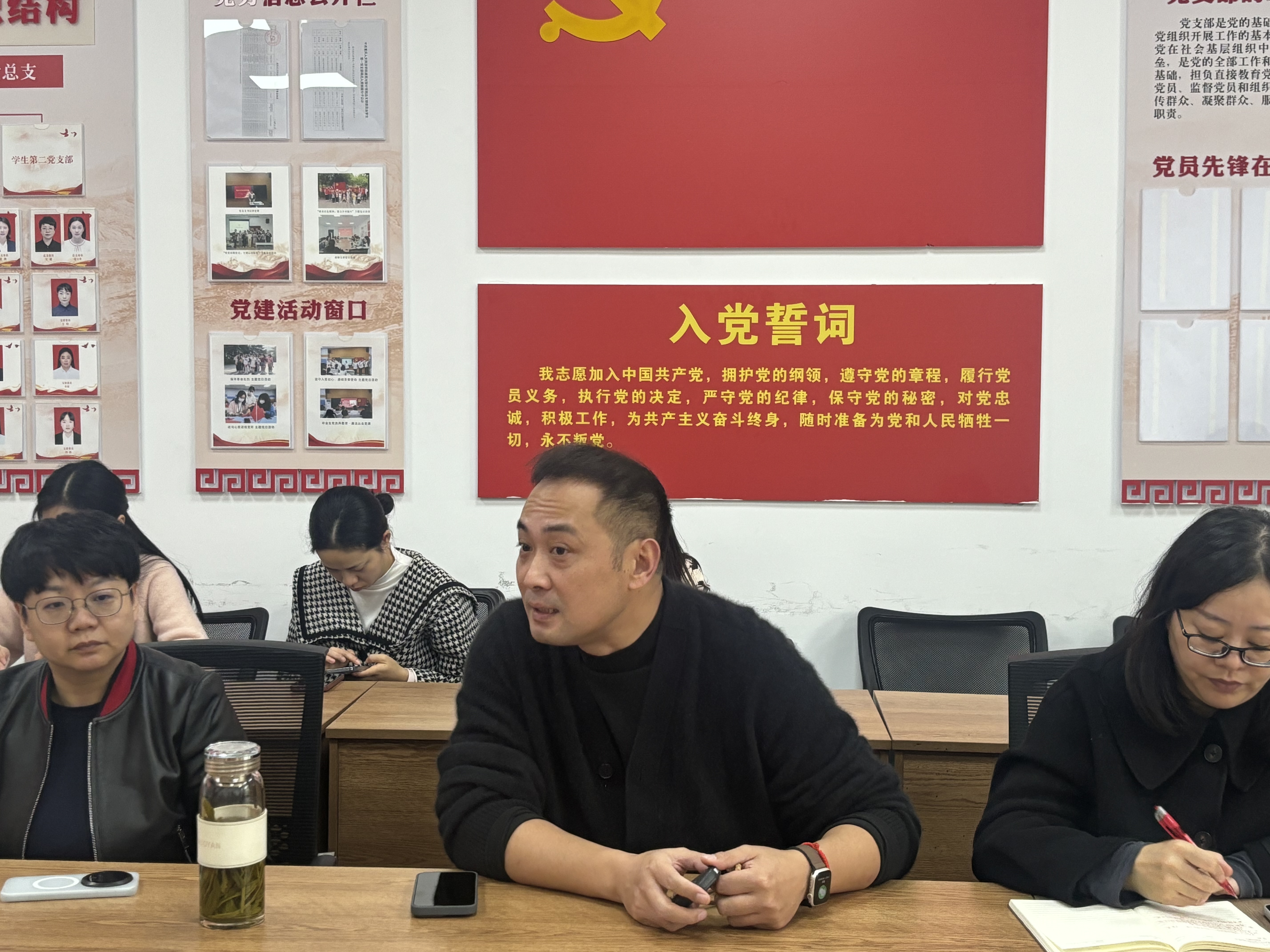 随后,党总支副书记梁宁华就近期学生思想动态、网络舆情管理、突发事件、安全隐患等工作开展情况作了简要汇报。她指出,学院整体学生思想状况稳定,各项工作有序推进。同时,她也强调要继续加强学生工作与教师队伍的联系,强化双向互动,做到全员、全过程育人。