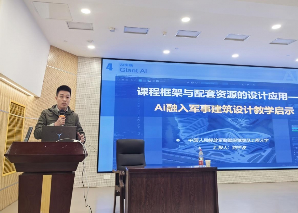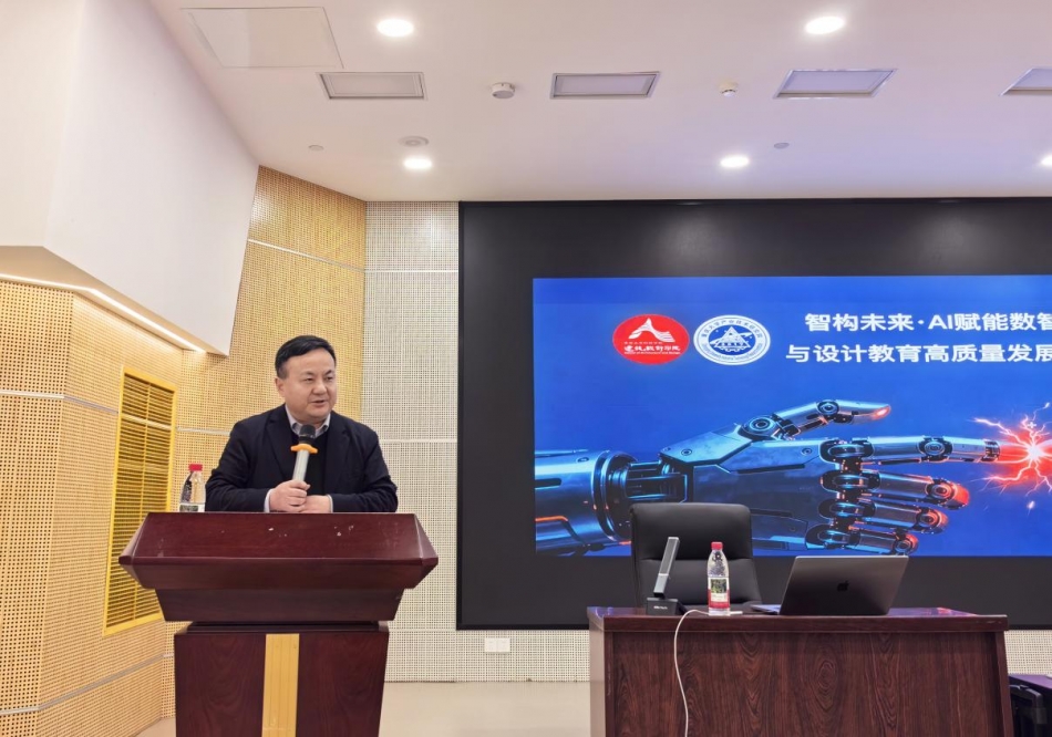 中午,与会专家参观了学院第八教学楼,对学科建设与教学环境成果给予高度评价,肯定学院在“AI+设计”方向的布局。下午,重庆大学曾旭东教授在题为《AI+建筑设计在教学中的应用》的报告中指出AIGC技术正通过文本生成、图像生成及多模态模型,推动教学从“工具辅助”转向“人机协同创新”;随后联勤保障部队工程大学刘宁波副教授以案例生动展示了AI为教学带来的颠覆性变革,彰显了其在设计全流程与教师教学上的深度赋能,令在场教师获得沉浸式的新体验。