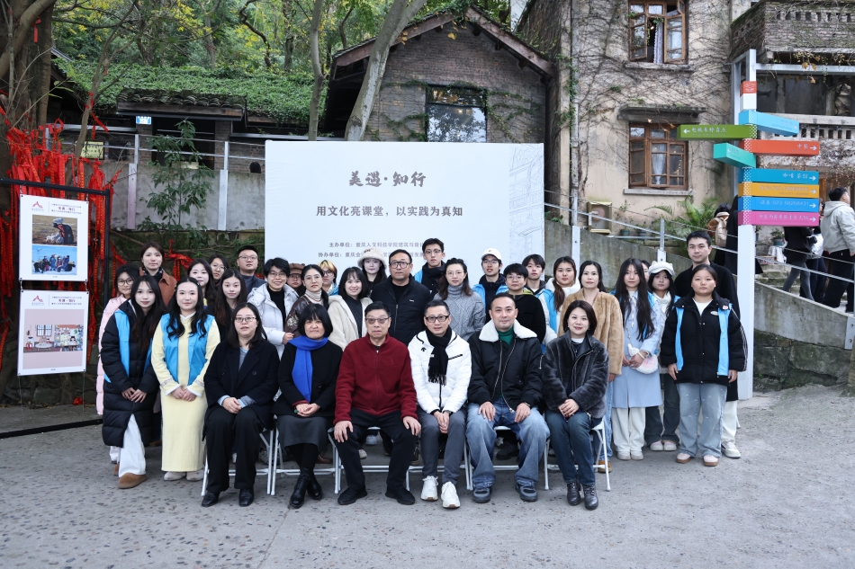 12月13日下午,建筑与设计学院在北碚金刚碑古村举行美遇·知行——“教学做合一”美育实践活动,并在金刚碑原统计局会议室召开座谈交流会。重庆金刚碑温塘聚落文化旅游发展有限公司策划部经理马小寒,物业主管汤洪,学校副校长孙敏,建筑与设计学院党政领导班子以及中华传统文化美育实践教学团队教师成员参加会议。会议由建筑与设计学院党总支书记唐湘晖主持。